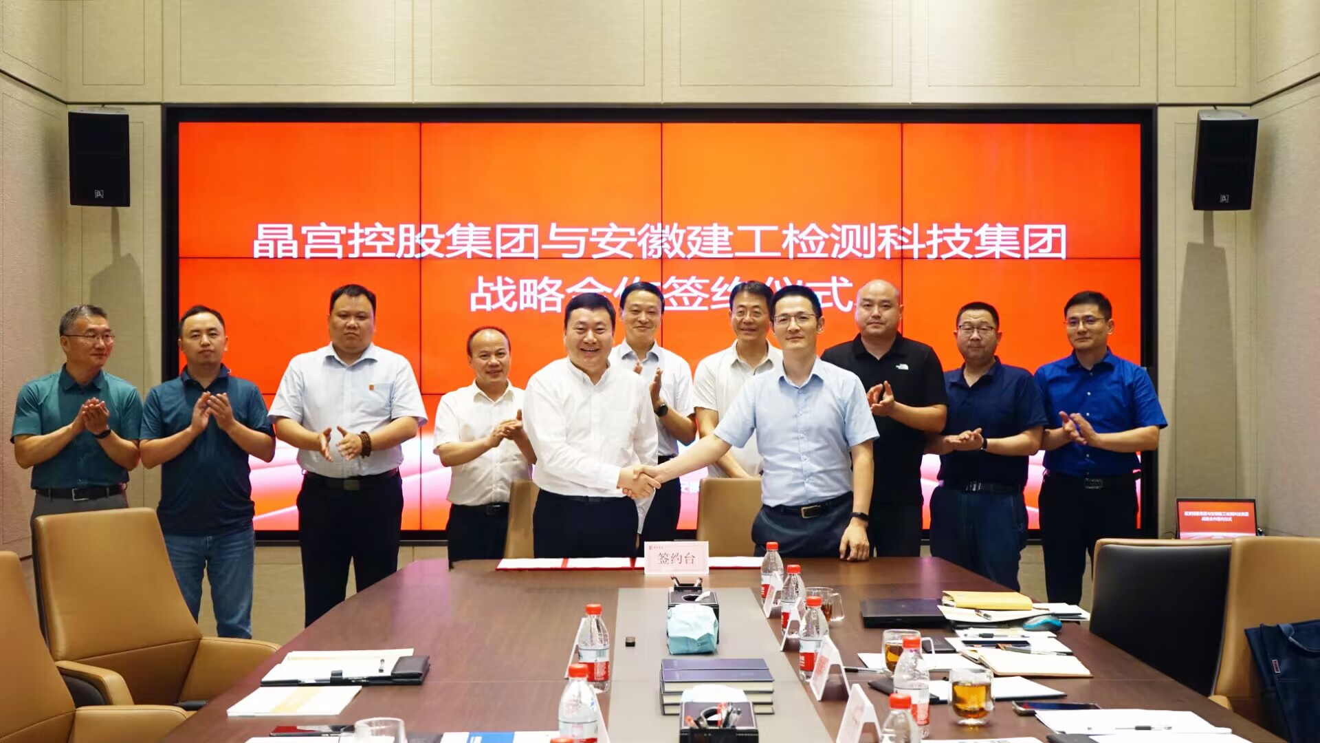會(huì)后,建工檢測(cè)集團(tuán)與晶宮控股集團(tuán)在與會(huì)人員的見證下簽訂了戰(zhàn)略合作協(xié)議。