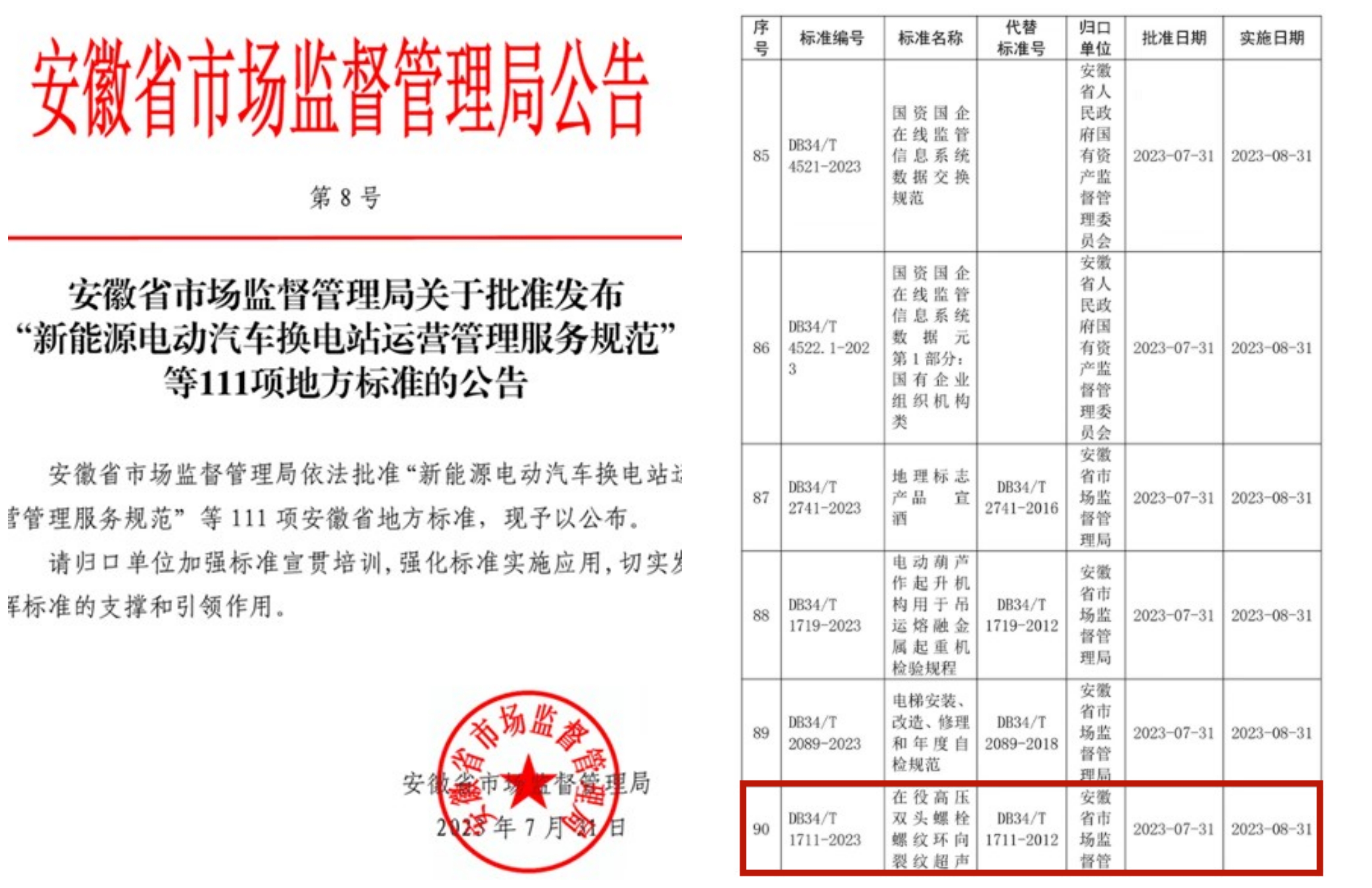 近日,安徽省市場監(jiān)督管理局發(fā)布公告,由安慶市特種設(shè)備監(jiān)督檢驗中心和安徽建工檢測科技集團(tuán)有限公司聯(lián)合主編的安徽省地方標(biāo)準(zhǔn)《在役高壓雙頭螺栓環(huán)向裂紋超聲波檢測方法》(DB34/T1711-2023)正式發(fā)布。